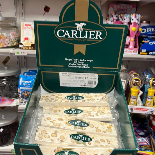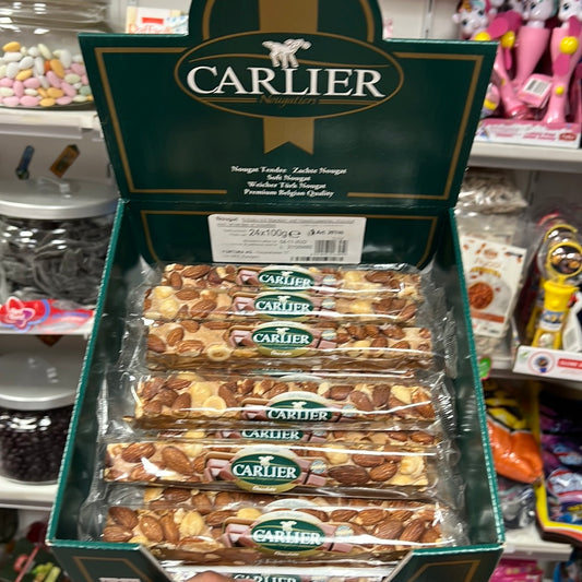 Nougat Stange schoko 100g.Carlier mit Nüssen & Mandenl